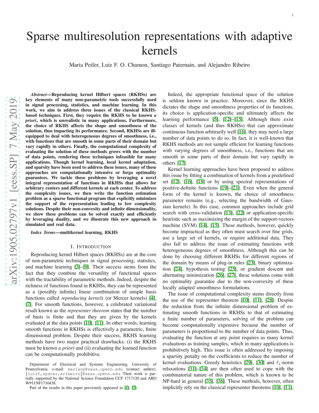 Sparse multiresolution representations with adaptive kernels