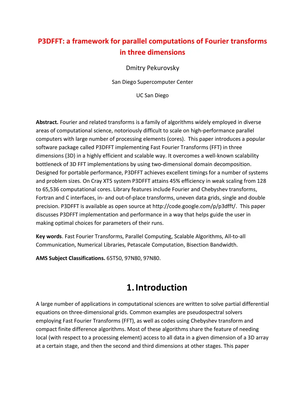 P3DFFT: a framework for parallel computations of Fourier transforms in