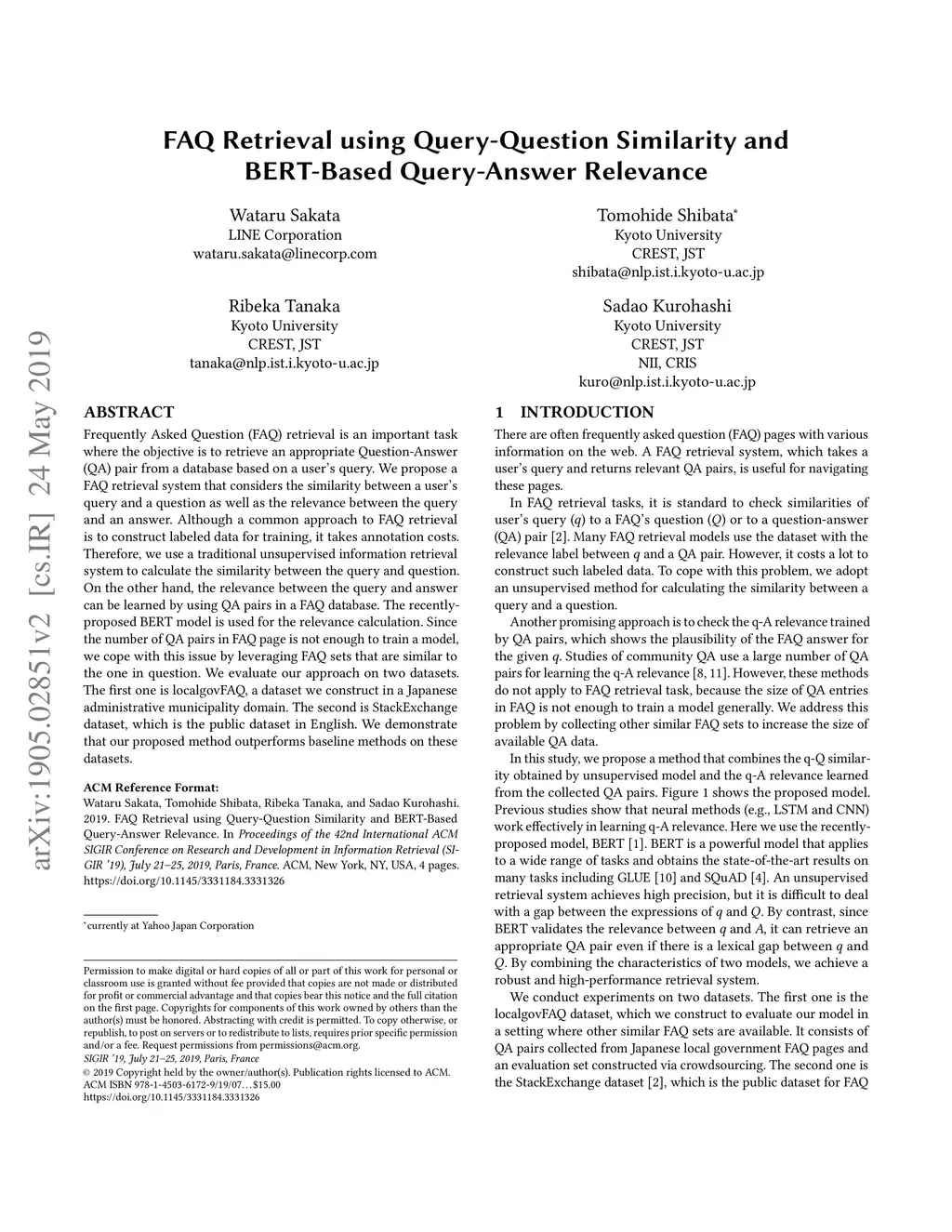 FAQ Retrieval using Query-Question Similarity and BERT-Based