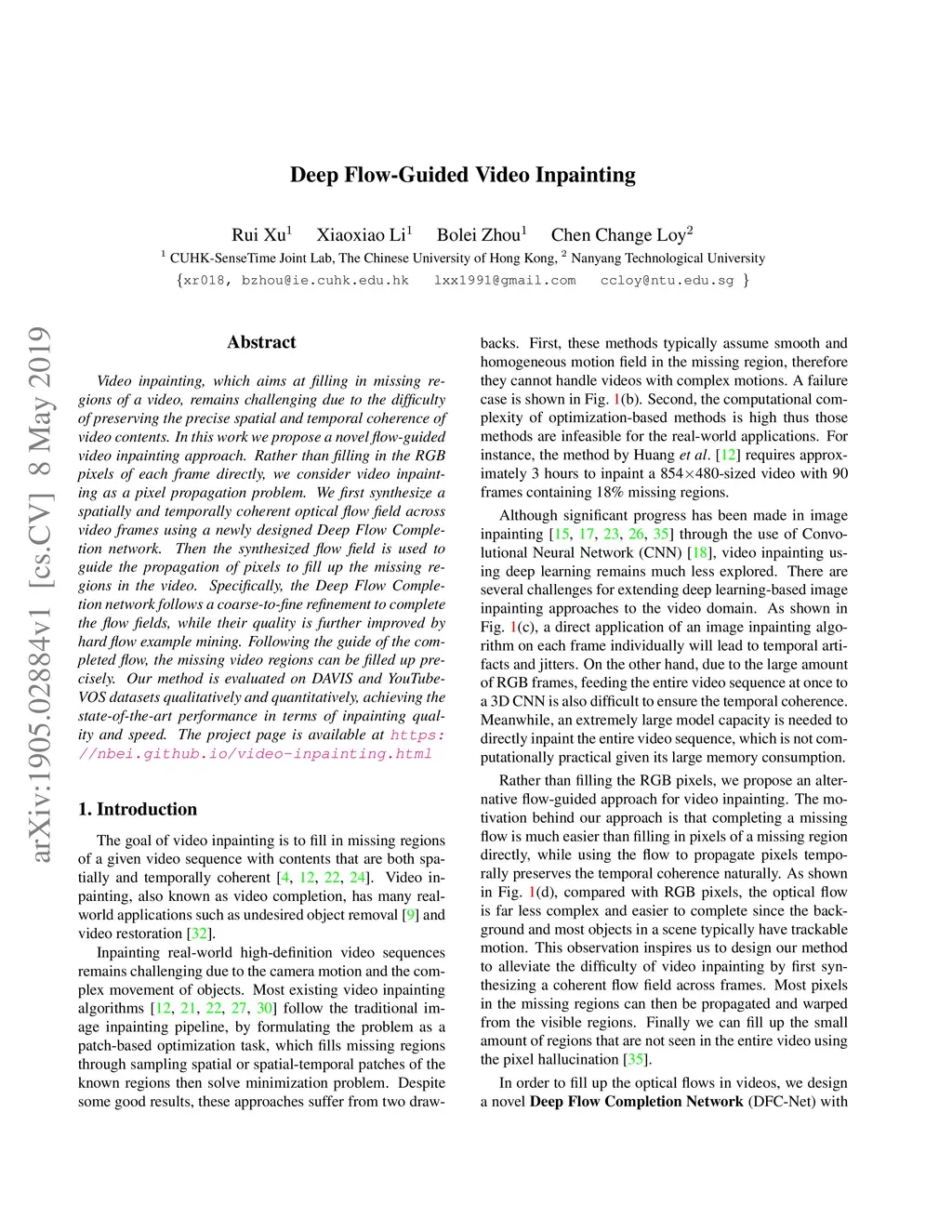 Deep Flow-Guided Video Inpainting