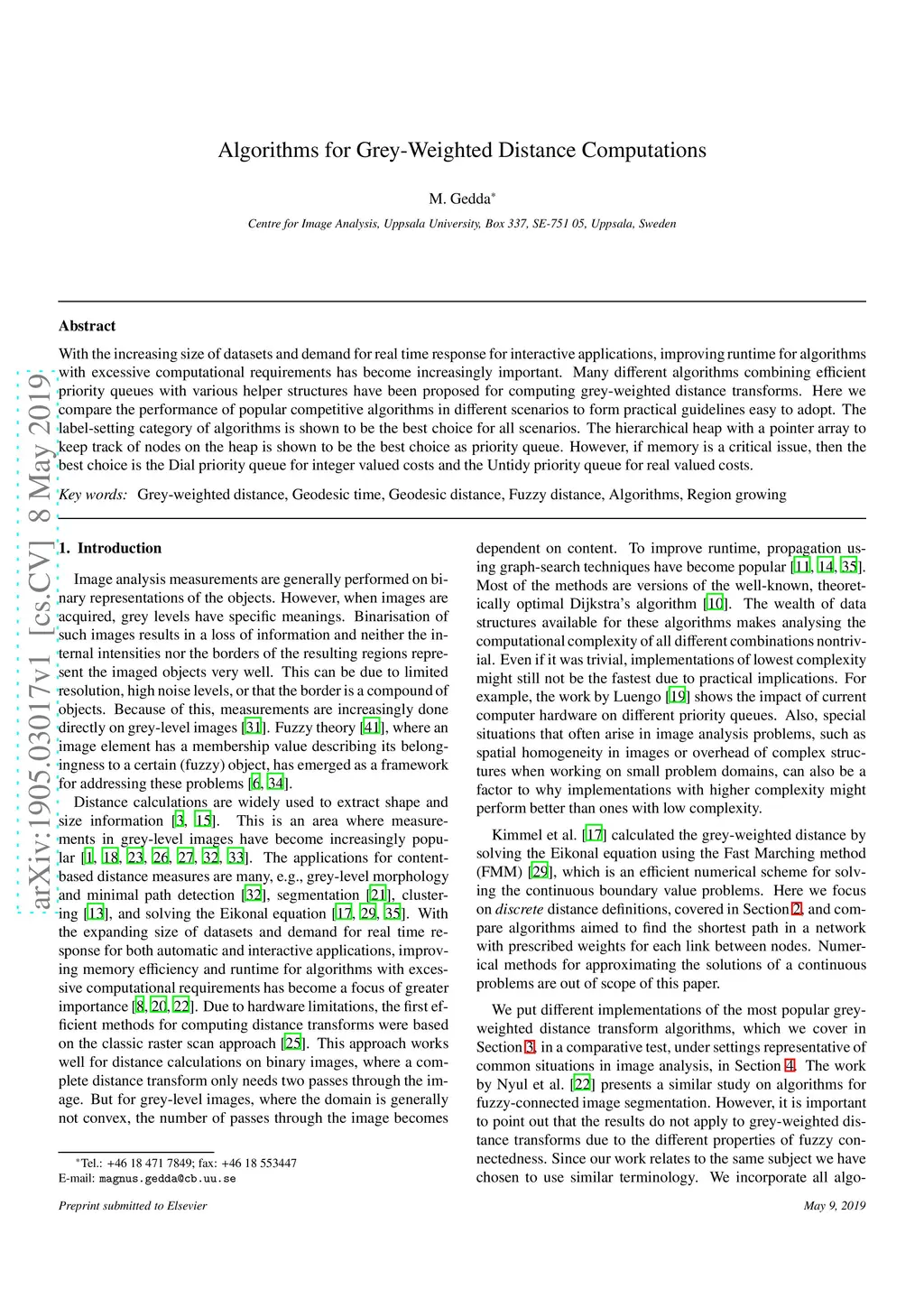 With the increasing size of datasets and demand for real time response for interactive applications, improving runtime for algorithms with excessive computational requirements has become increasingly important. Many different algorithms combining efficient priority queues with various helper structures have been proposed for computing grey-weighted distance transforms. Here we compare the performance of popular competitive algorithms in different scenarios to form practical guidelines easy to adopt. The label-setting category of algorithms is shown to be the best choice for all scenarios. The hierarchical heap with a pointer array to keep track of nodes on the heap is shown to be the best choice as priority queue. However, if memory is a critical issue, then the best choice is the Dial priority queue for integer valued costs and the Untidy priority queue for real valued costs.
