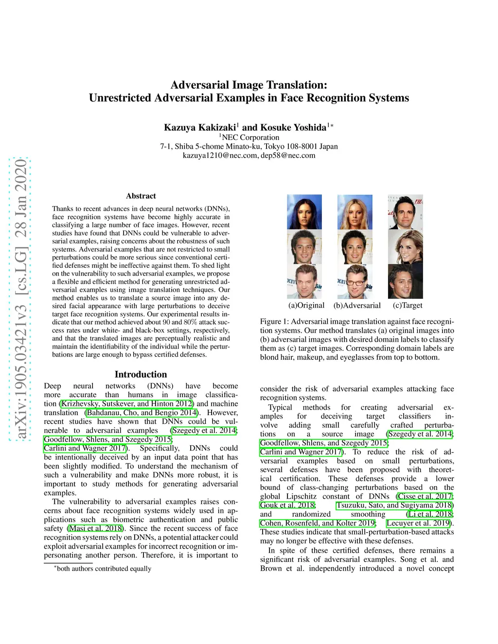 Adversarial Image Translation: Unrestricted Adversarial Examples in Face