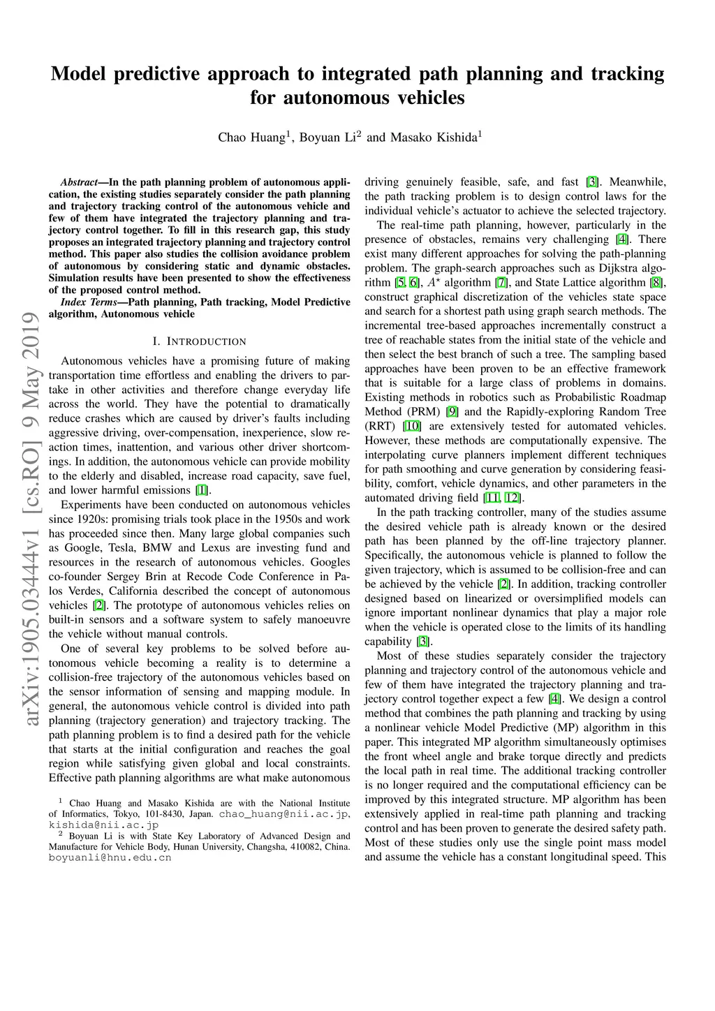 Model predictive approach to integrated path planning and tracking for