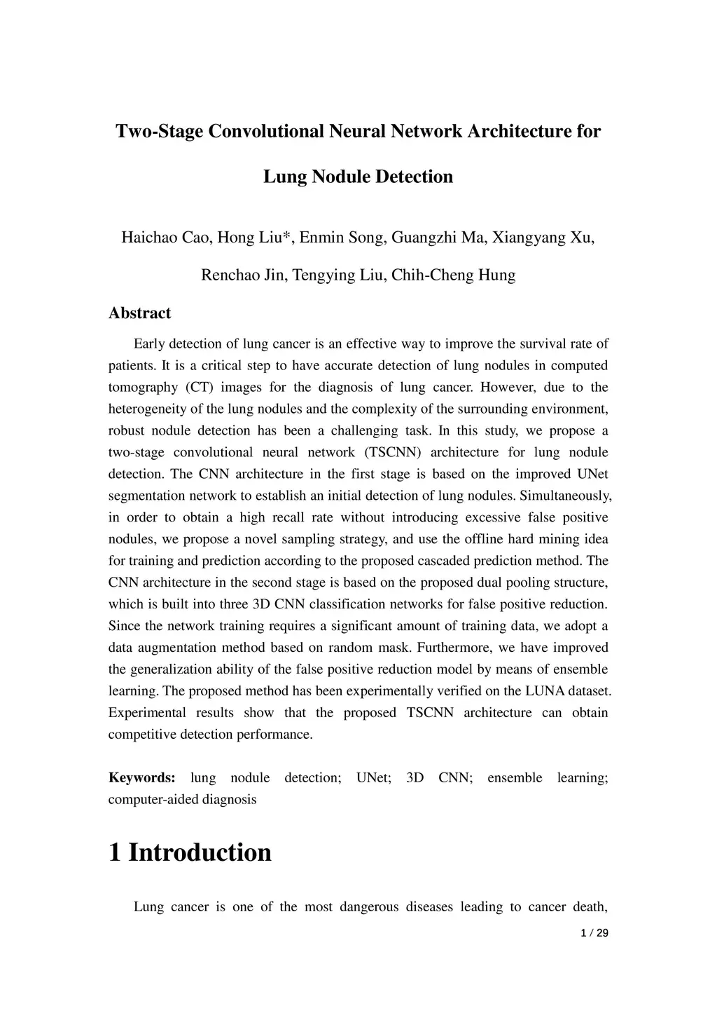 Two-Stage Convolutional Neural Network Architecture for Lung Nodule