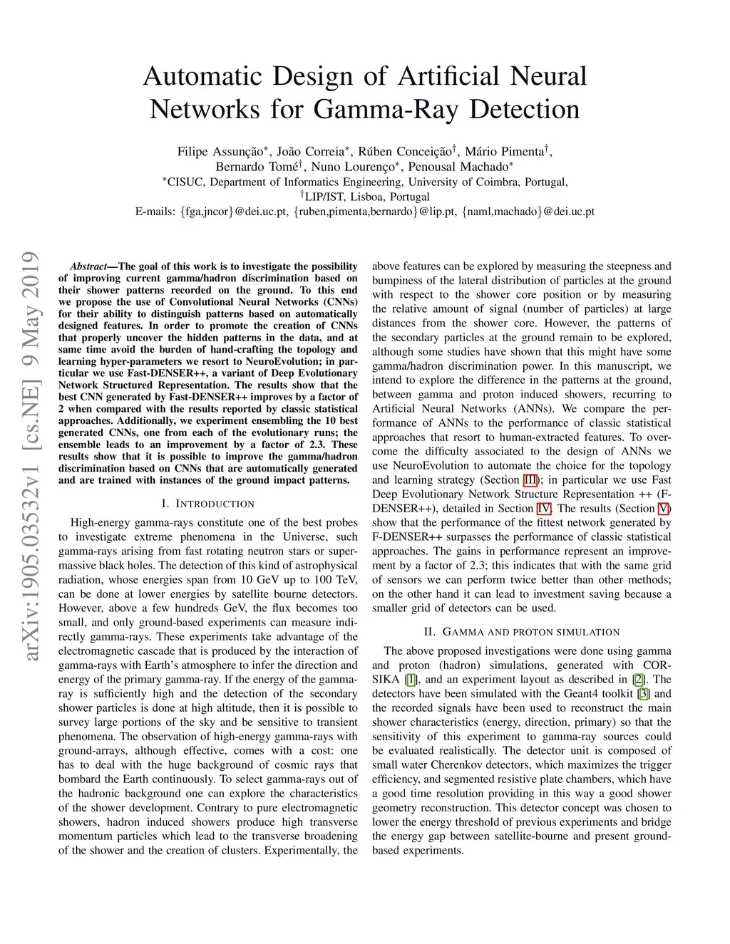 Automatic Design of Artificial Neural Networks for Gamma-Ray Detection