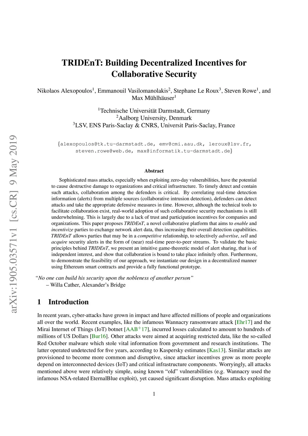 TRIDEnT: Building Decentralized Incentives for Collaborative Security
