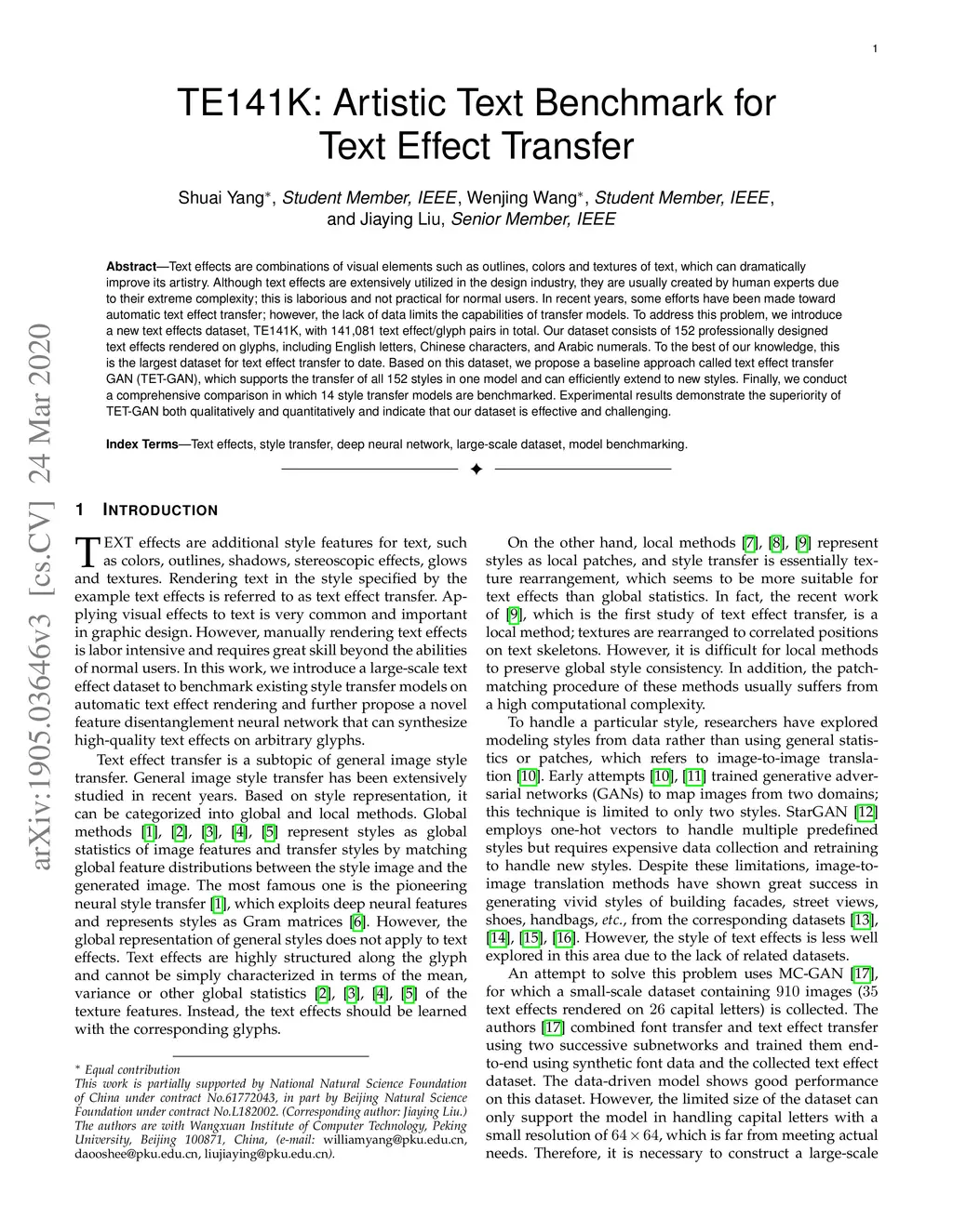 TE141K: Artistic Text Benchmark for Text Effect Transfer