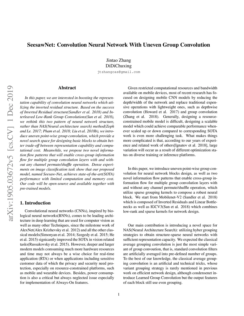 Seesaw-Net: Convolution Neural Network With Uneven Group Convolution