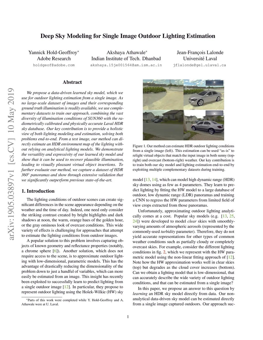 Deep Sky Modeling for Single Image Outdoor Lighting Estimation
