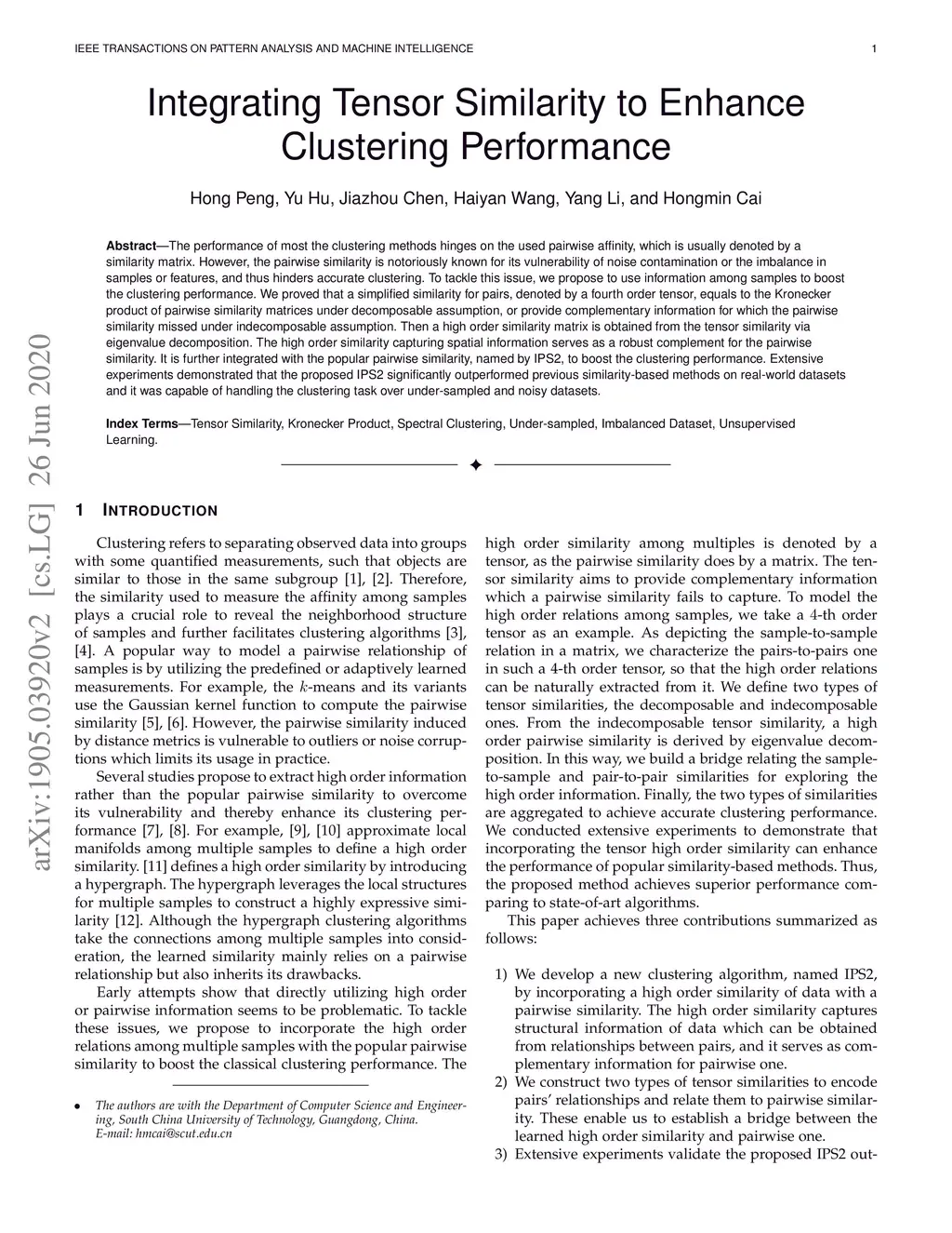 Integrating Tensor Similarity to Enhance Clustering Performance