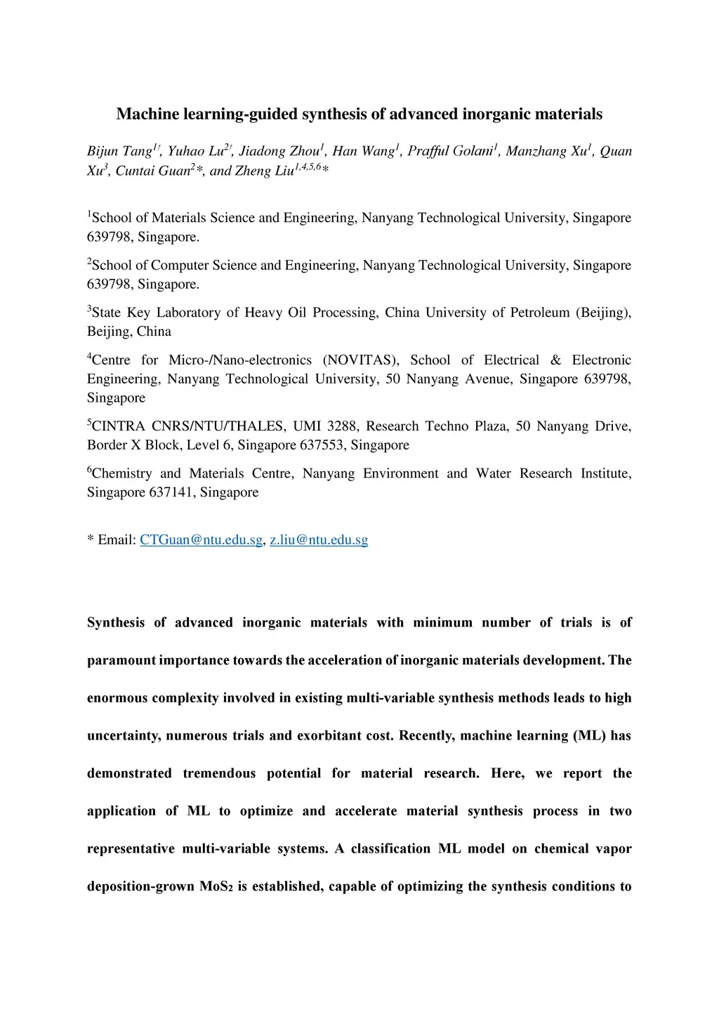 Machine learning-guided synthesis of advanced inorganic materials