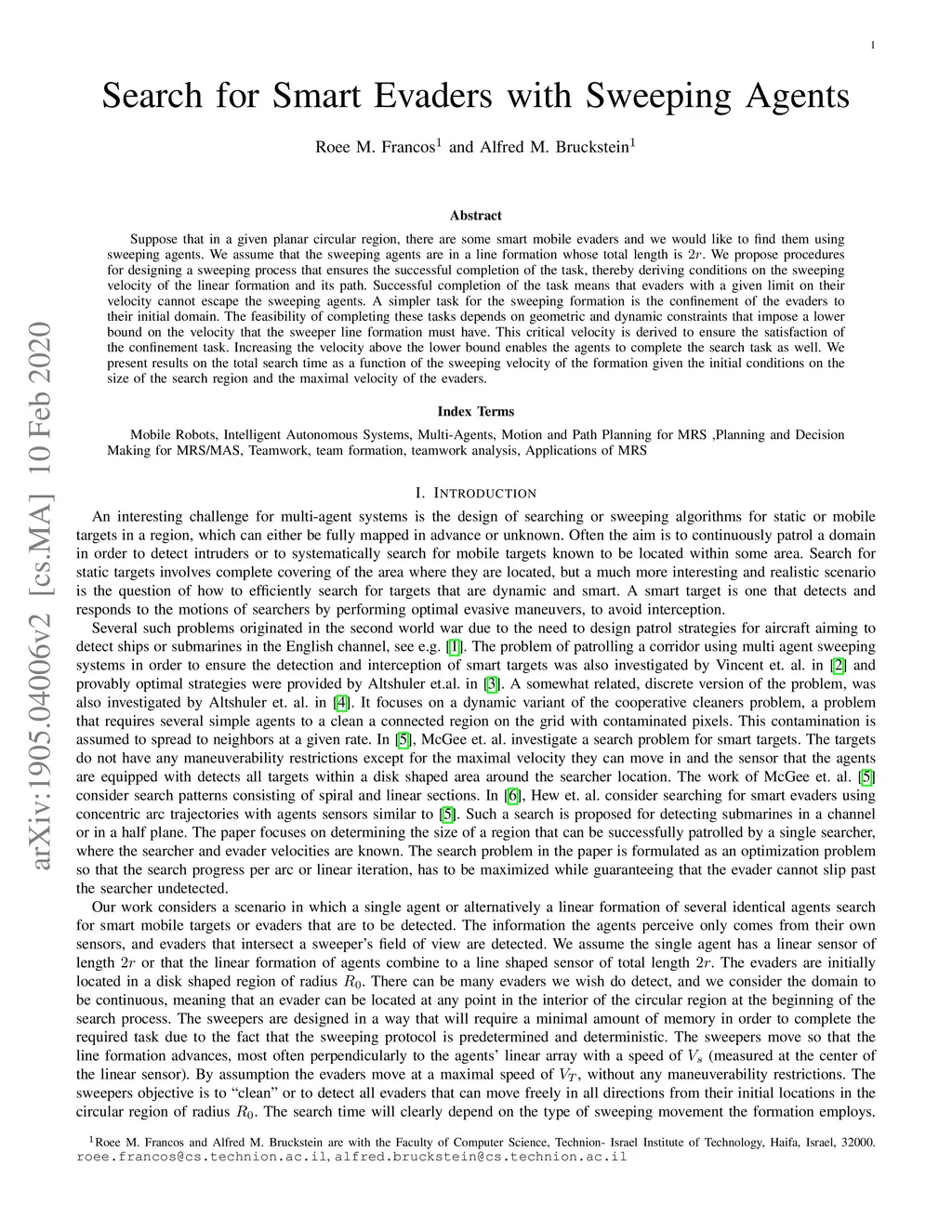 Suppose that in a given planar circular region, there are some smart mobile evaders and we would like to find them using sweeping agents. We assume that the sweeping agents are in a line formation whose total length is 2r. We propose procedures for designing a sweeping process that ensures the successful completion of the task, thereby deriving conditions on the sweeping velocity of the linear formation and its path. Successful completion of the task means that evaders with a given limit on their velocity cannot escape the sweeping agents. A simpler task for the sweeping formation is the confinement of the evaders to their initial domain. The feasibility of completing these tasks depends on geometric and dynamic constraints that impose a lower bound on the velocity that the sweeper line formation must have. This critical velocity is derived to ensure the satisfaction of the confinement task. Increasing the velocity above the lower bound enables the agents to complete the search task as well. We present results on the total search time as a function of the sweeping velocity of the formation given the initial conditions on the size of the search region and the maximal velocity of the evaders.