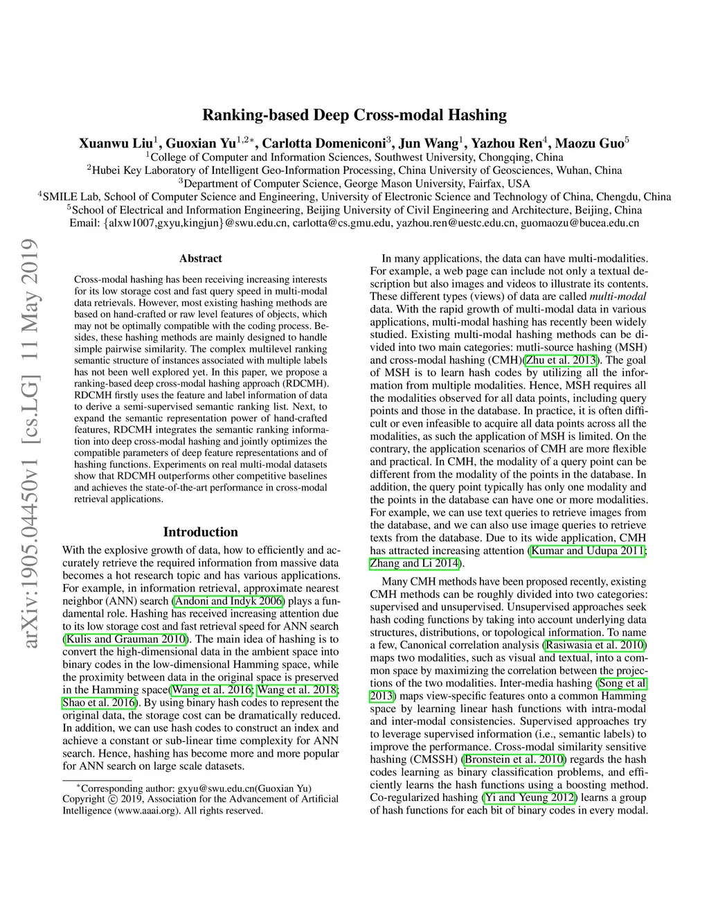 Ranking-based Deep Cross-modal Hashing