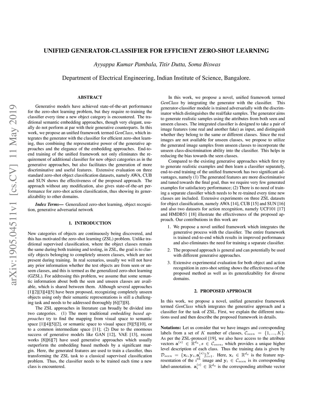 Unified Generator-Classifier for Efficient Zero-Shot Learning