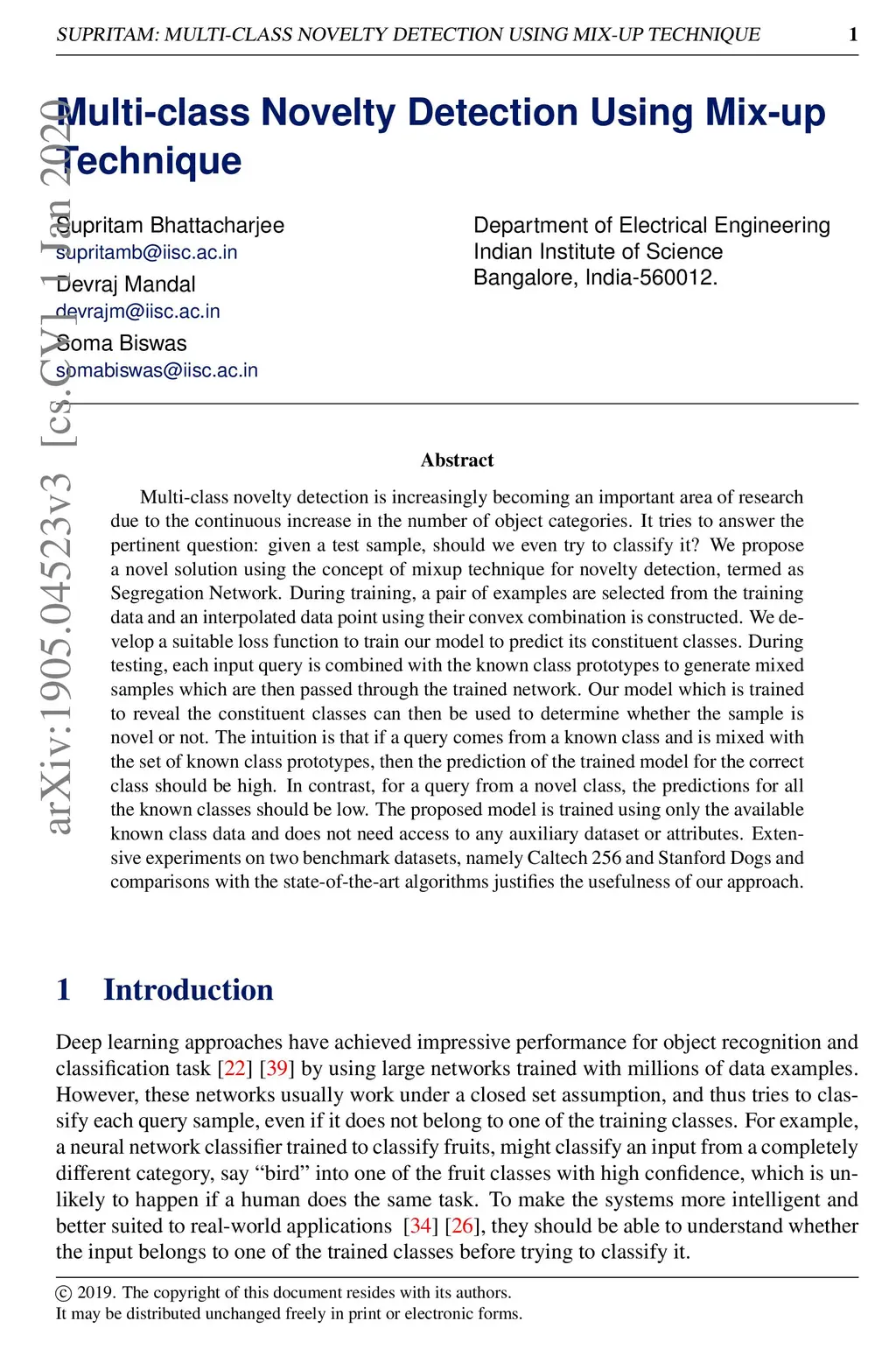 Multi-class novelty detection is increasingly becoming an important area of research due to the continuous increase in the number of object categories. It tries to answer the pertinent question: given a test sample, should we even try to classify it? We propose a novel solution using the concept of mixup technique for novelty detection, termed as Segregation Network. During training, a pair of examples are selected from the training data and an interpolated data point using their convex combination is constructed. We develop a suitable loss function to train our model to predict its constituent classes. During testing, each input query is combined with the known class prototypes to generate mixed samples which are then passed through the trained network. Our model which is trained to reveal the constituent classes can then be used to determine whether the sample is novel or not. The intuition is that if a query comes from a known class and is mixed with the set of known class prototypes, then the prediction of the trained model for the correct class should be high. In contrast, for a query from a novel class, the predictions for all the known classes should be low. The proposed model is trained using only the available known class data and does not need access to any auxiliary dataset or attributes. Extensive experiments on two benchmark datasets, namely Caltech 256 and Stanford Dogs and comparisons with the state-of-the-art algorithms justifies the usefulness of our approach.