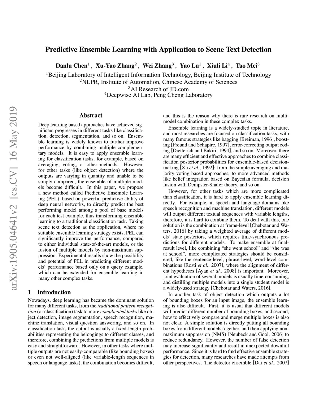 Predictive Ensemble Learning with Application to Scene Text Detection