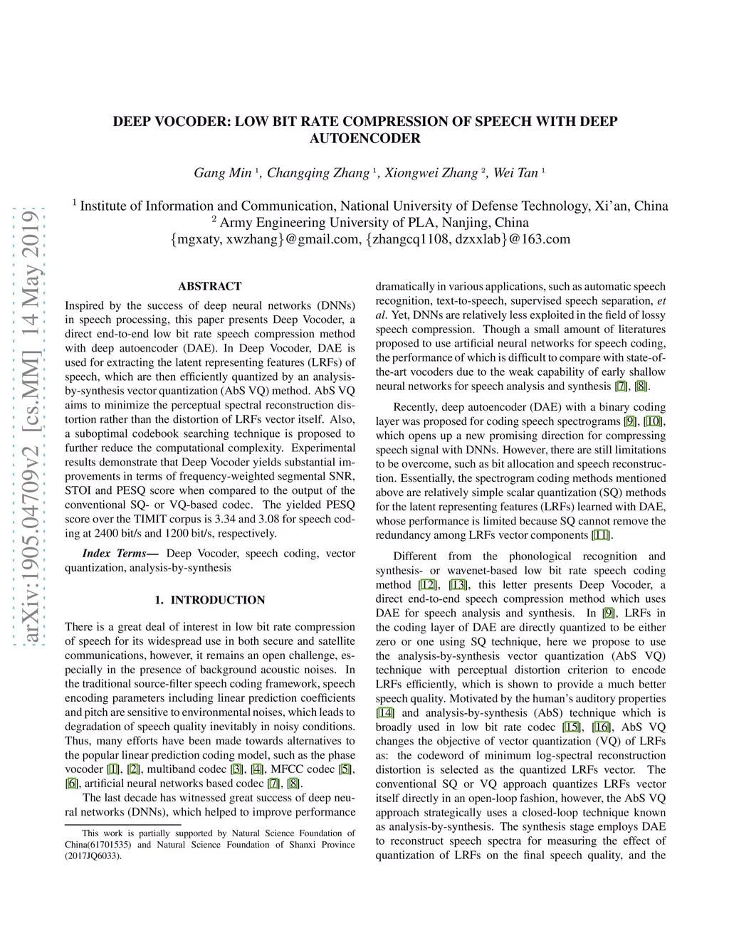 Deep Vocoder: Low Bit Rate Compression of Speech with Deep Autoencoder