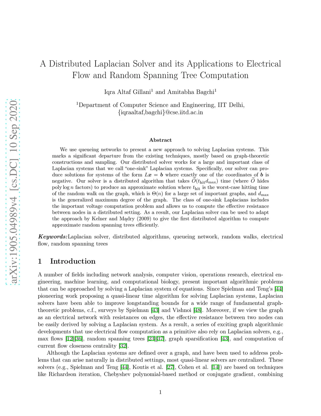 A Distributed Laplacian Solver and its Applications to Electrical Flow