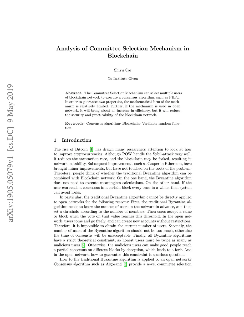 The Committee Selection Mechanism can select multiple users of blockchain network to execute a consensus algorithm, such as PBFT. In order to guarantee two properties, the mathematical form of the mechanism is relatively limited. Further, if the mechanism is used in open network, it will bring about an increase in efficiency, but it will reduce the security and practicability of the blockchain network.
