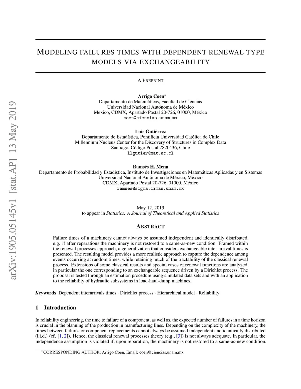 Failure times of a machinery cannot always be assumed independent and identically distributed, e.g. if after reparations the machinery is not restored to a same-as-new condition. Framed within the renewal processes approach, a generalization that considers exchangeable inter-arrival times is presented. The resulting model provides a more realistic approach to capture the dependence among events occurring at random times, while retaining much of the tractability of the classical renewal process. Extensions of some classical results and special cases of renewal functions are analyzed, in particular the one corresponding to an exchangeable sequence driven by a Dirichlet process. The proposal is tested through an estimation procedure using simulated data sets and with an application to the reliability of hydraulic subsystems in load-haul-dump machines.