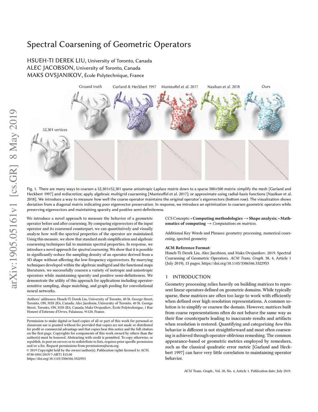We introduce a novel approach to measure the behavior of a geometric operator before and after coarsening. By comparing eigenvectors of the input operator and its coarsened counterpart, we can quantitatively and visually analyze how well the spectral properties of the operator are maintained. Using this measure, we show that standard mesh simplification and algebraic coarsening techniques fail to maintain spectral properties. In response, we introduce a novel approach for spectral coarsening. We show that it is possible to significantly reduce the sampling density of an operator derived from a 3D shape without affecting the low-frequency eigenvectors. By marrying techniques developed within the algebraic multigrid and the functional maps literatures, we successfully coarsen a variety of isotropic and anisotropic operators while maintaining sparsity and positive semi-definiteness. We demonstrate the utility of this approach for applications including operator-sensitive sampling, shape matching, and graph pooling for convolutional neural networks.
