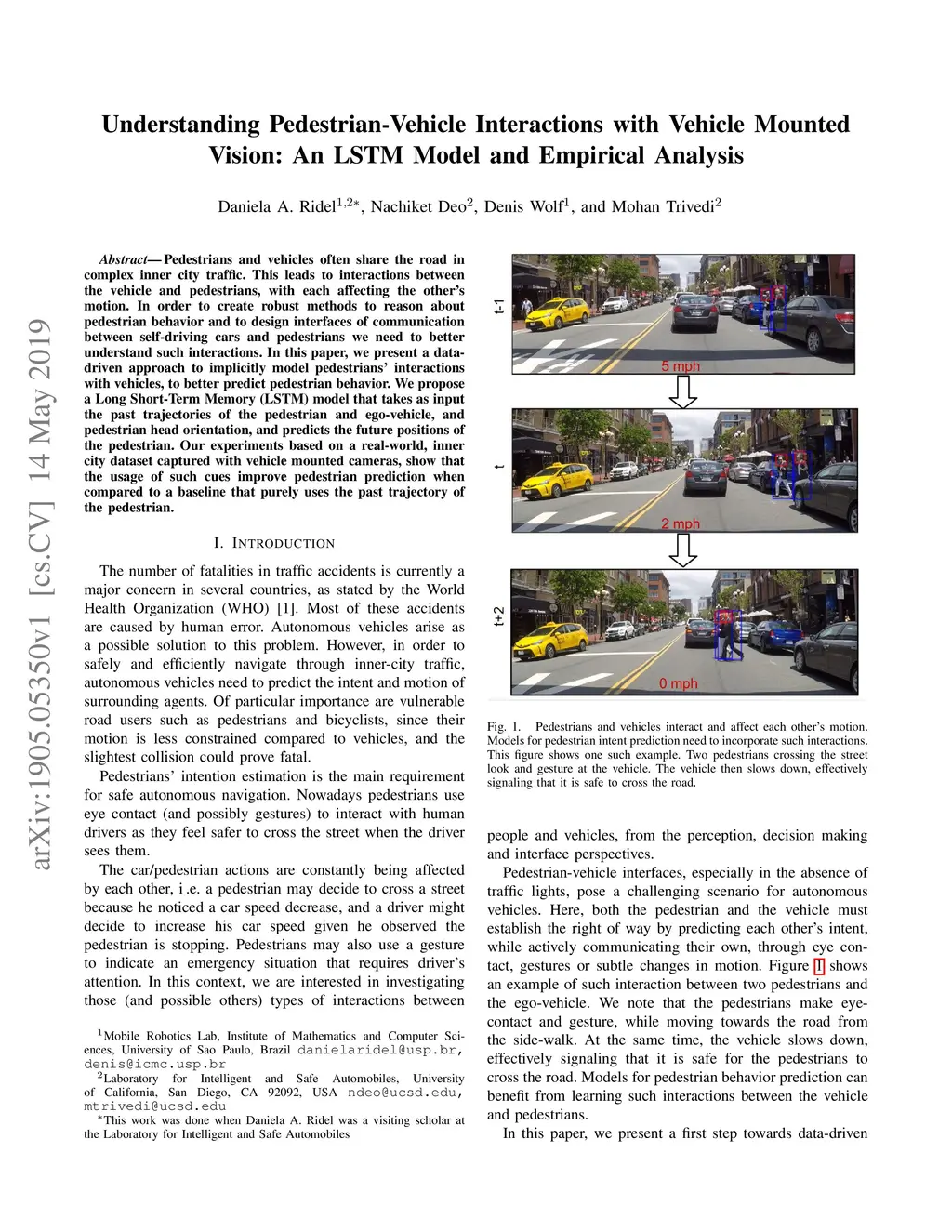 Understanding Pedestrian-Vehicle Interactions with Vehicle Mounted