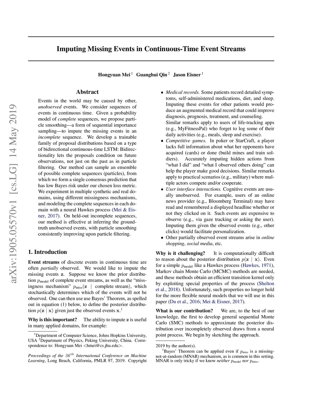 Imputing Missing Events in Continuous-Time Event Streams