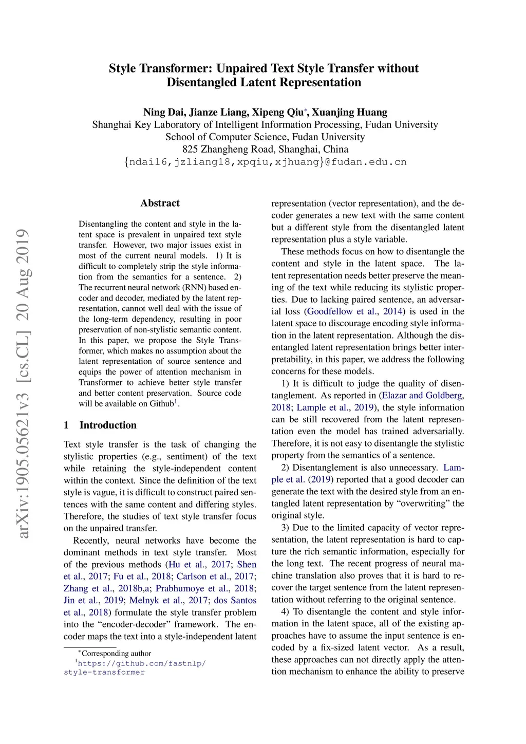 Style Transformer: Unpaired Text Style Transfer without Disentangled