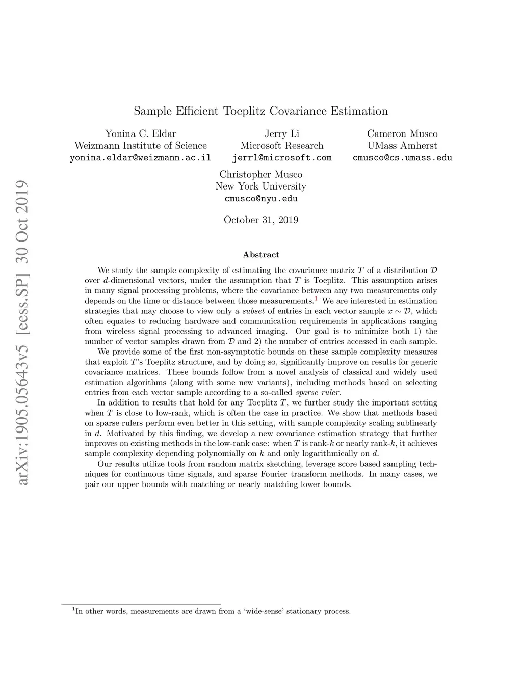 Sample Efficient Toeplitz Covariance Estimation