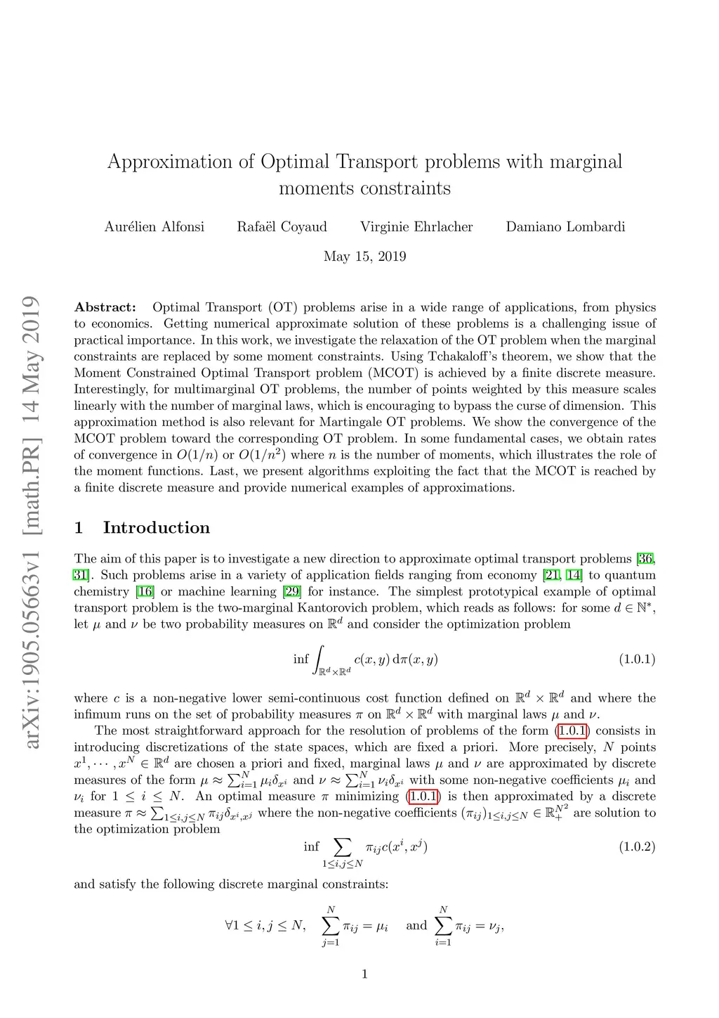 Approximation of Optimal Transport problems with marginal moments