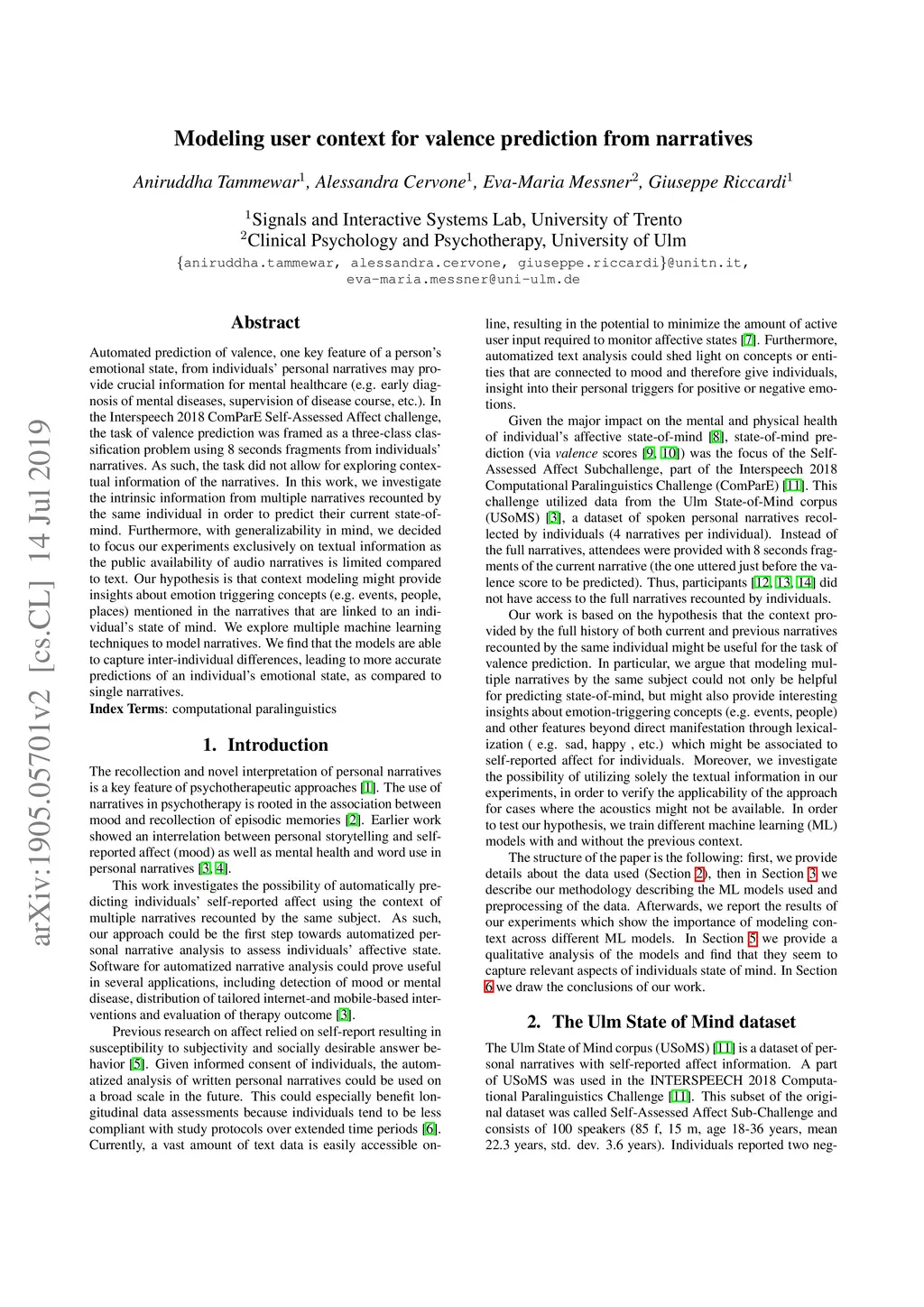 Automated prediction of valence, one key feature of a person's emotional state, from individuals' personal narratives may provide crucial information for mental healthcare (e.g. early diagnosis of mental diseases, supervision of disease course, etc.). In the Interspeech 2018 ComParE Self-Assessed Affect challenge, the task of valence prediction was framed as a three-class classification problem using 8 seconds fragments from individuals' narratives. As such, the task did not allow for exploring contextual information of the narratives. In this work, we investigate the intrinsic information from multiple narratives recounted by the same individual in order to predict their current state-of-mind. Furthermore, with generalizability in mind, we decided to focus our experiments exclusively on textual information as the public availability of audio narratives is limited compared to text. Our hypothesis is, that context modeling might provide insights about emotion triggering concepts (e.g. events, people, places) mentioned in the narratives that are linked to an individual's state of mind. We explore multiple machine learning techniques to model narratives. We find that the models are able to capture inter-individual differences, leading to more accurate predictions of an individual's emotional state, as compared to single narratives.
