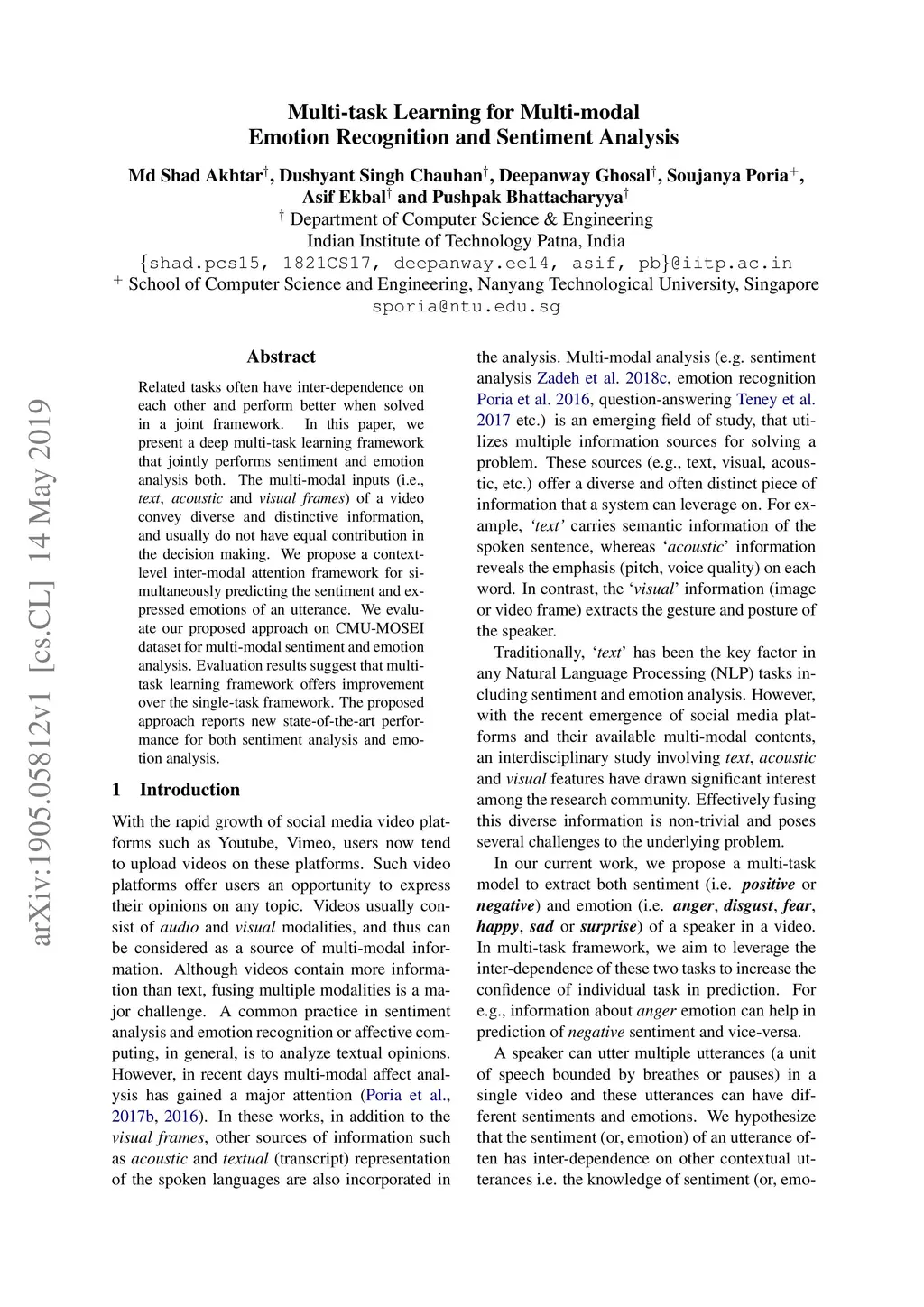 Multi-task Learning for Multi-modal Emotion Recognition and Sentiment