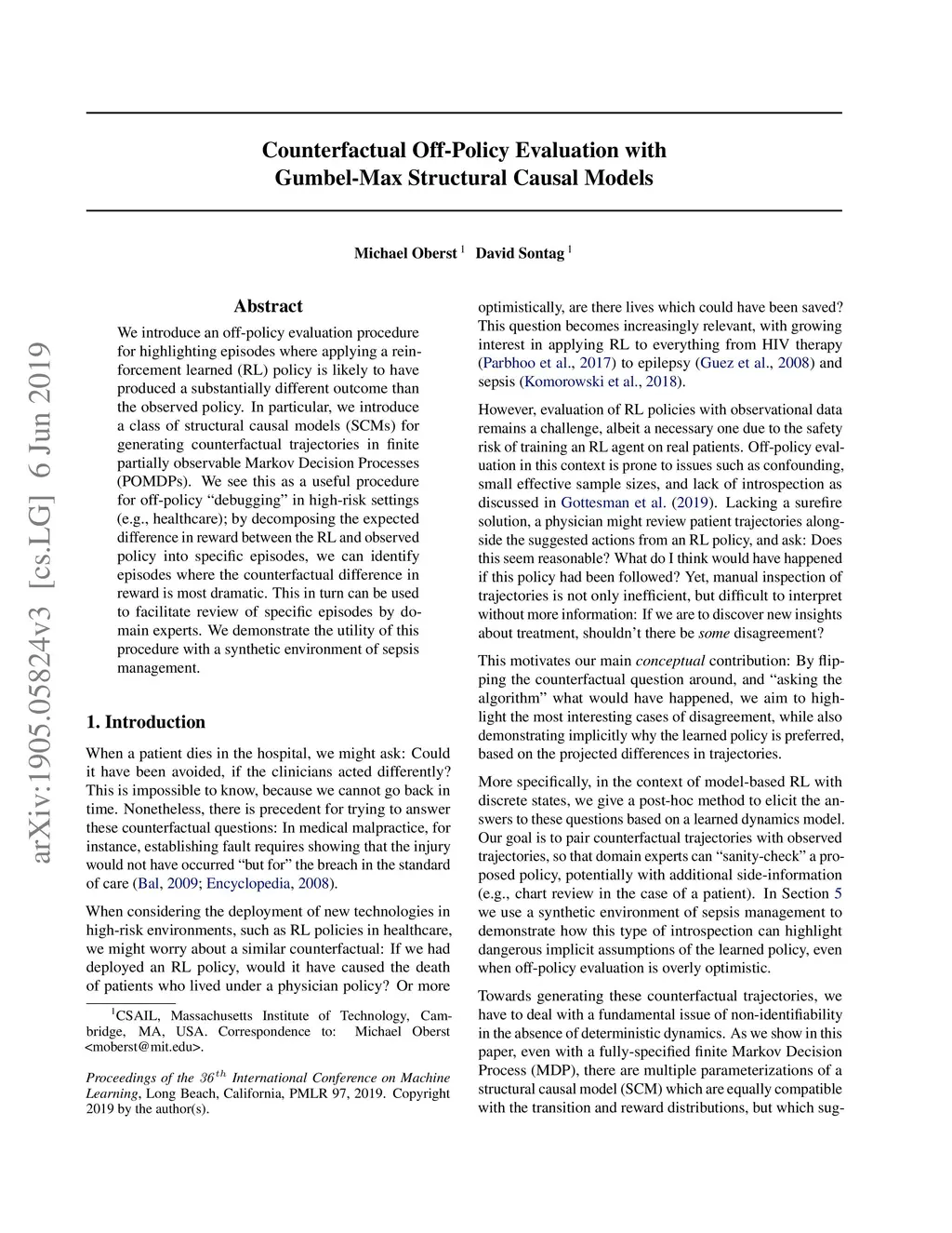 Counterfactual Off-Policy Evaluation with Gumbel-Max Structural Causal