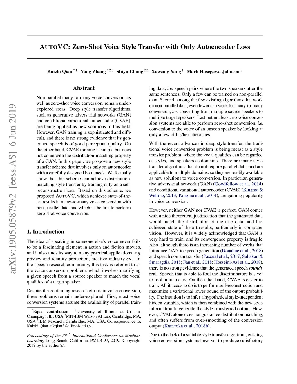 AUTOVC: Zero-Shot Voice Style Transfer with Only Autoencoder Loss