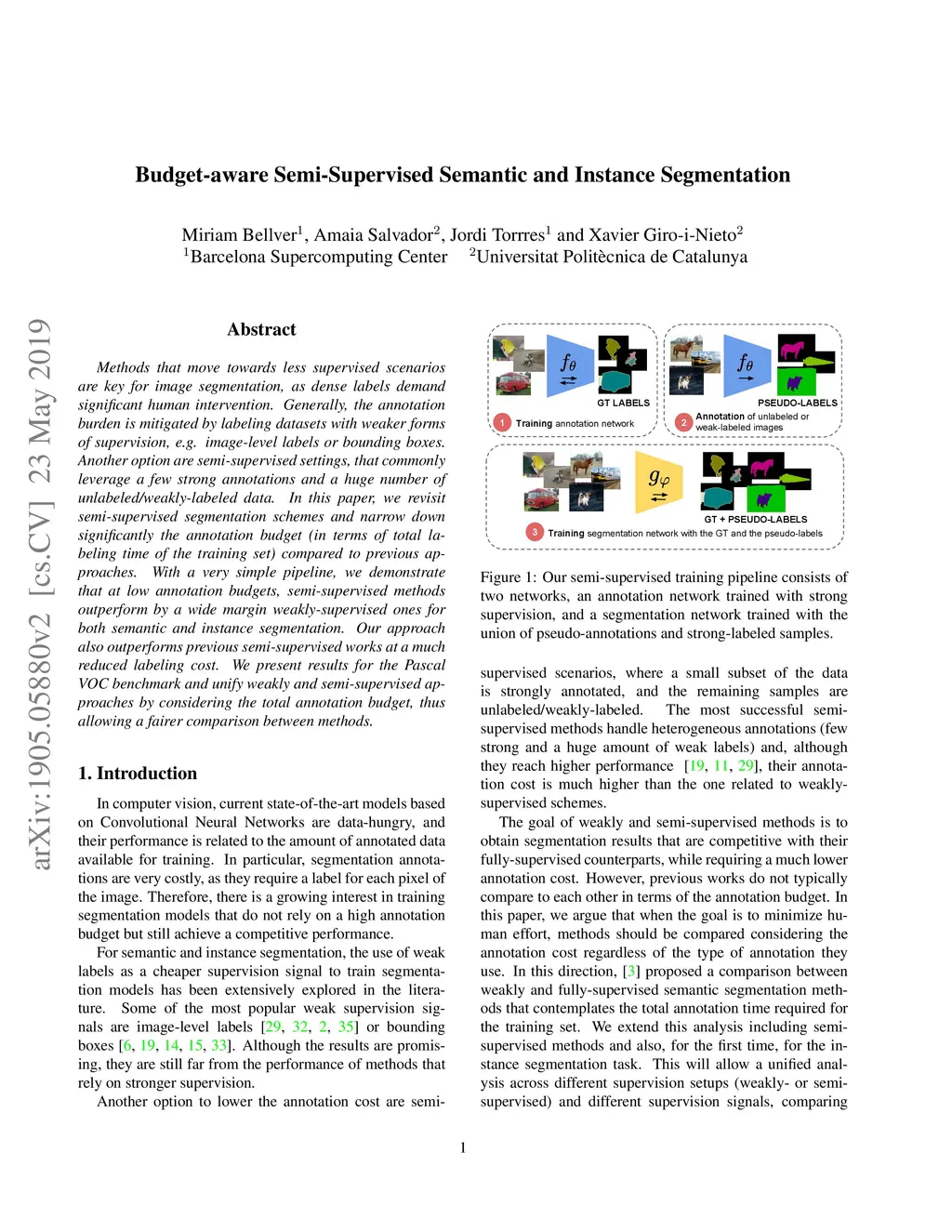 Methods that move towards less supervised scenarios are key for image segmentation, as dense labels demand significant human intervention. Generally, the annotation burden is mitigated by labeling datasets with weaker forms of supervision, e.g. image-level labels or bounding boxes. Another option are semi-supervised settings, that commonly leverage a few strong annotations and a huge number of unlabeled/weakly-labeled data. In this paper, we revisit semi-supervised segmentation schemes and narrow down significantly the annotation budget (in terms of total labeling time of the training set) compared to previous approaches. With a very simple pipeline, we demonstrate that at low annotation budgets, semi-supervised methods outperform by a wide margin weakly-supervised ones for both semantic and instance segmentation. Our approach also outperforms previous semi-supervised works at a much reduced labeling cost. We present results for the Pascal VOC benchmark and unify weakly and semi-supervised approaches by considering the total annotation budget, thus allowing a fairer comparison between methods.