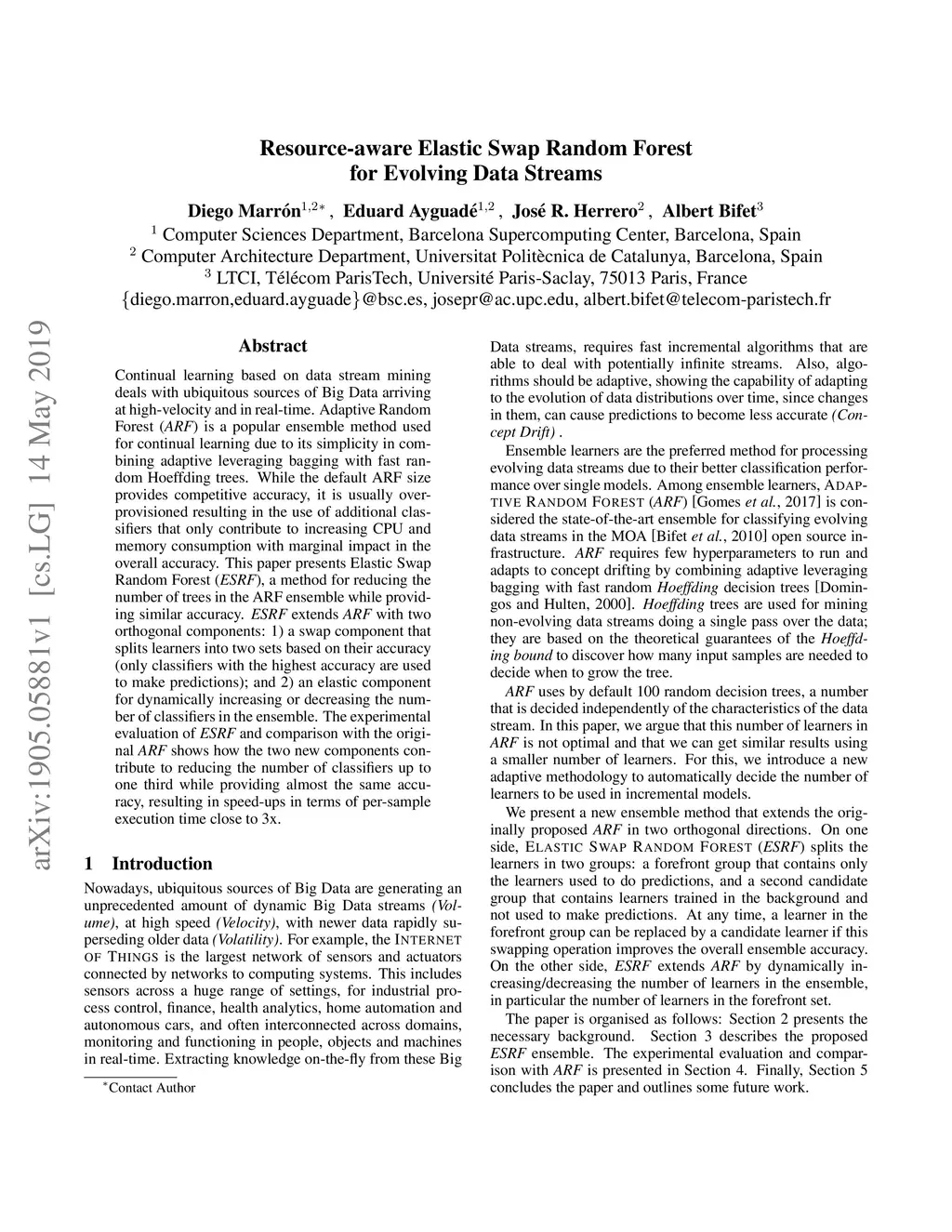 Resource-aware Elastic Swap Random Forest for Evolving Data Streams