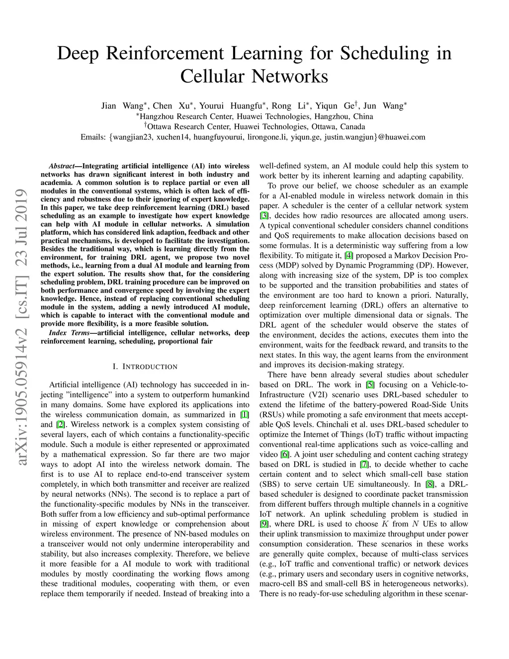 Deep Reinforcement Learning for Scheduling in Cellular Networks