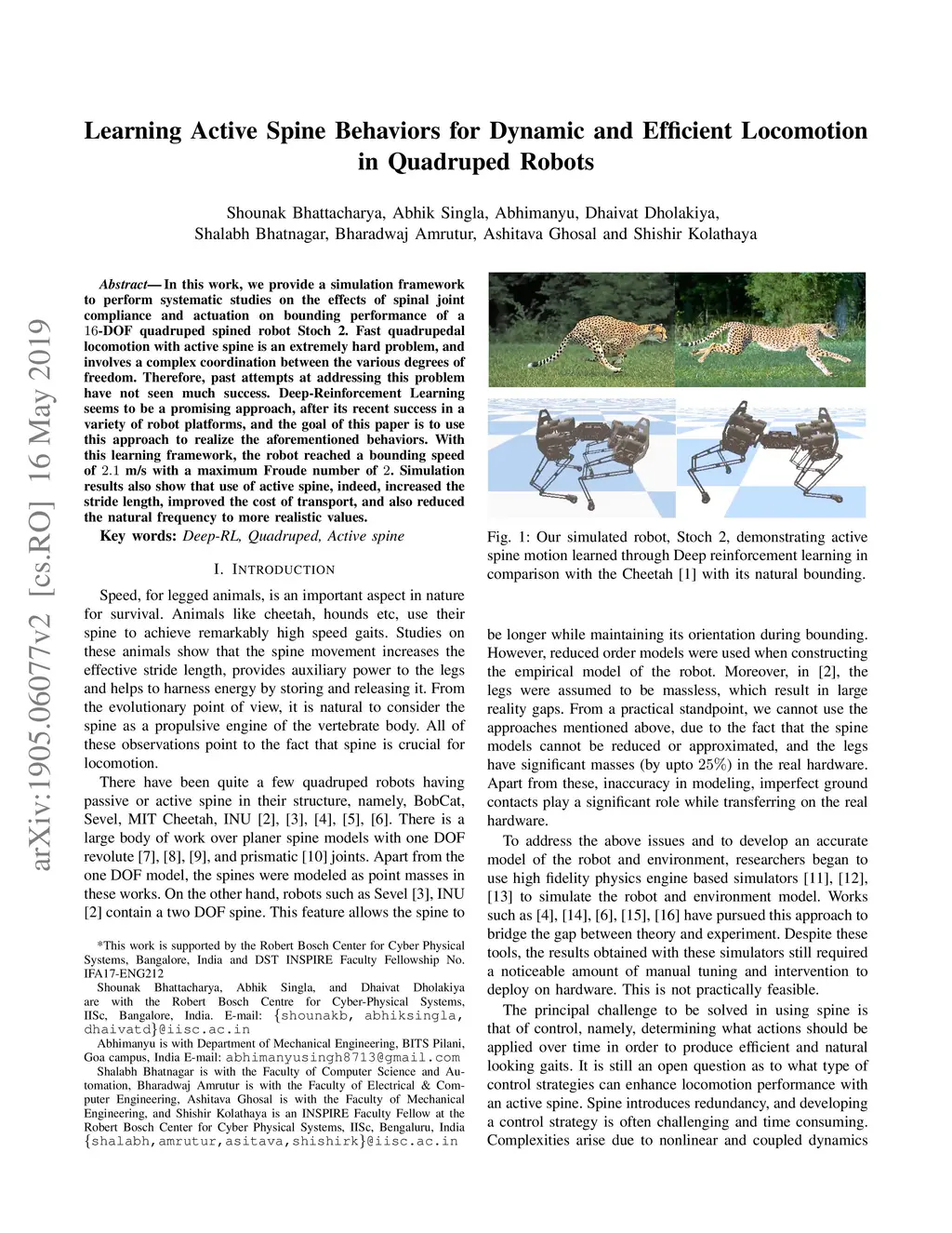 In this work, we provide a simulation framework to perform systematic studies on the effects of spinal joint compliance and actuation on bounding performance of a 16-DOF quadruped spined robot Stoch 2. Fast quadrupedal locomotion with active spine is an extremely hard problem, and involves a complex coordination between the various degrees of freedom. Therefore, past attempts at addressing this problem have not seen much success. Deep-Reinforcement Learning seems to be a promising approach, after its recent success in a variety of robot platforms, and the goal of this paper is to use this approach to realize the aforementioned behaviors. With this learning framework, the robot reached a bounding speed of 2.1 m/s with a maximum Froude number of 2. Simulation results also show that use of active spine, indeed, increased the stride length, improved the cost of transport, and also reduced the natural frequency to more realistic values.