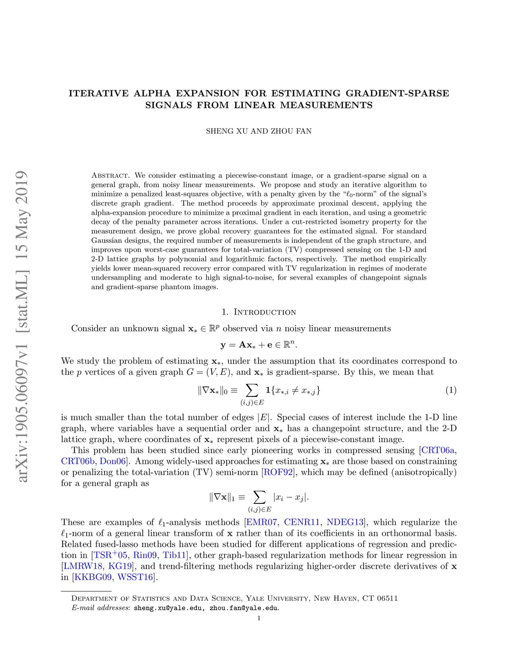 Iterative Alpha Expansion for estimating gradient-sparse signals from