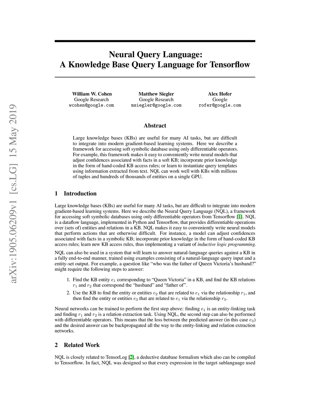 Neural Query Language: A Knowledge Base Query Language for Tensorflow