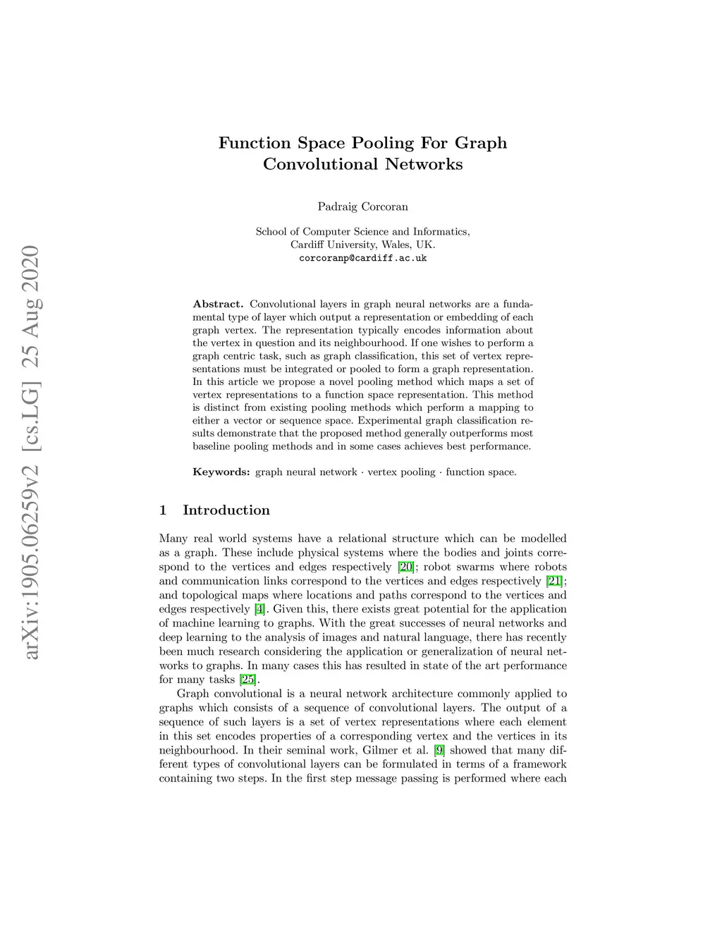 Function Space Pooling For Graph Convolutional Networks