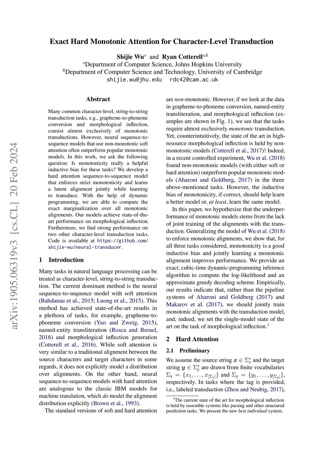 Exact Hard Monotonic Attention for Character-Level Transduction