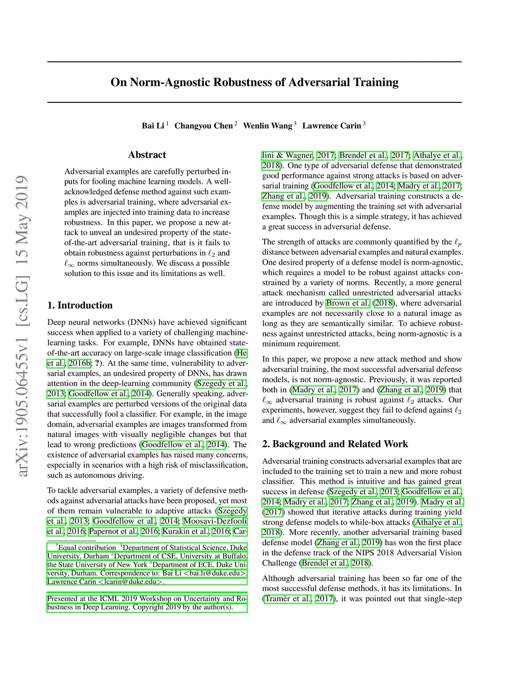 On Norm-Agnostic Robustness of Adversarial Training
