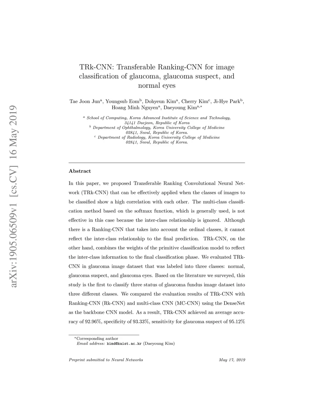TRk-CNN: Transferable Ranking-CNN for image classification of glaucoma,