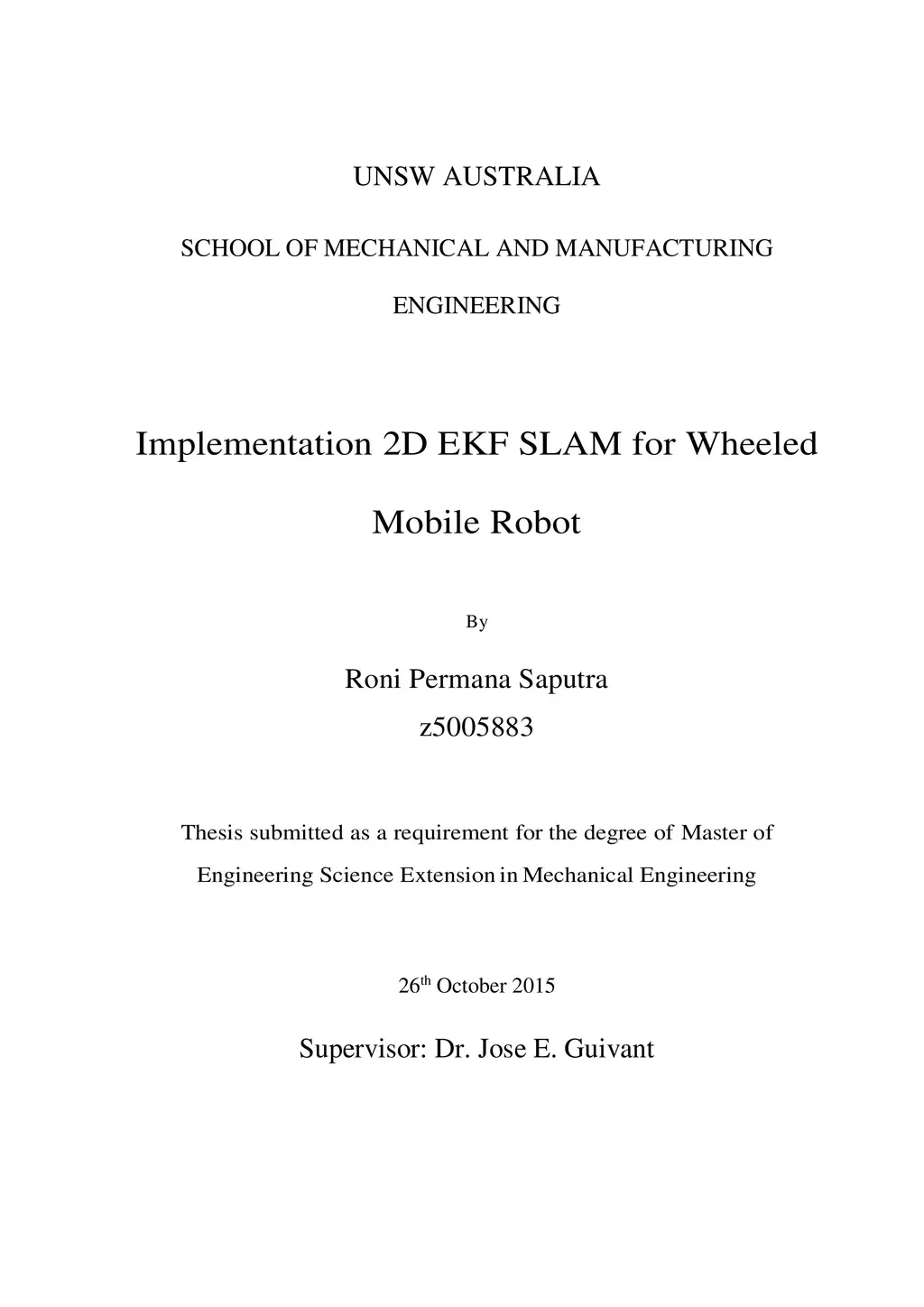 The main goal of this project is that the basic EKF-based SLAM operation can be implemented sufficiently for estimating the state of the UGV that is operated in this real environment involving dynamic objects. Several problems in practical implementation of SLAM operation such as processing measurement data, removing bias measurement, extracting landmarks from the measurement data, pre-filtering extracted landmarks and data association in the observed landmarks are observed during the operation of EKF-based SLAM system . In addition, the comparison of EKF-based SLAM operation with dead reckoning operation and Global Positioning System (GPS) are also performed to determine the effectiveness and performance of EKF-based SLAM operation in the real environment.