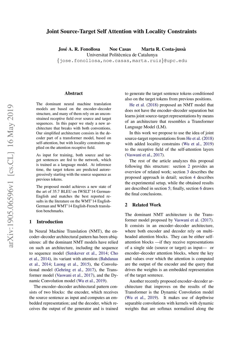 Joint Source-Target Self Attention with Locality Constraints