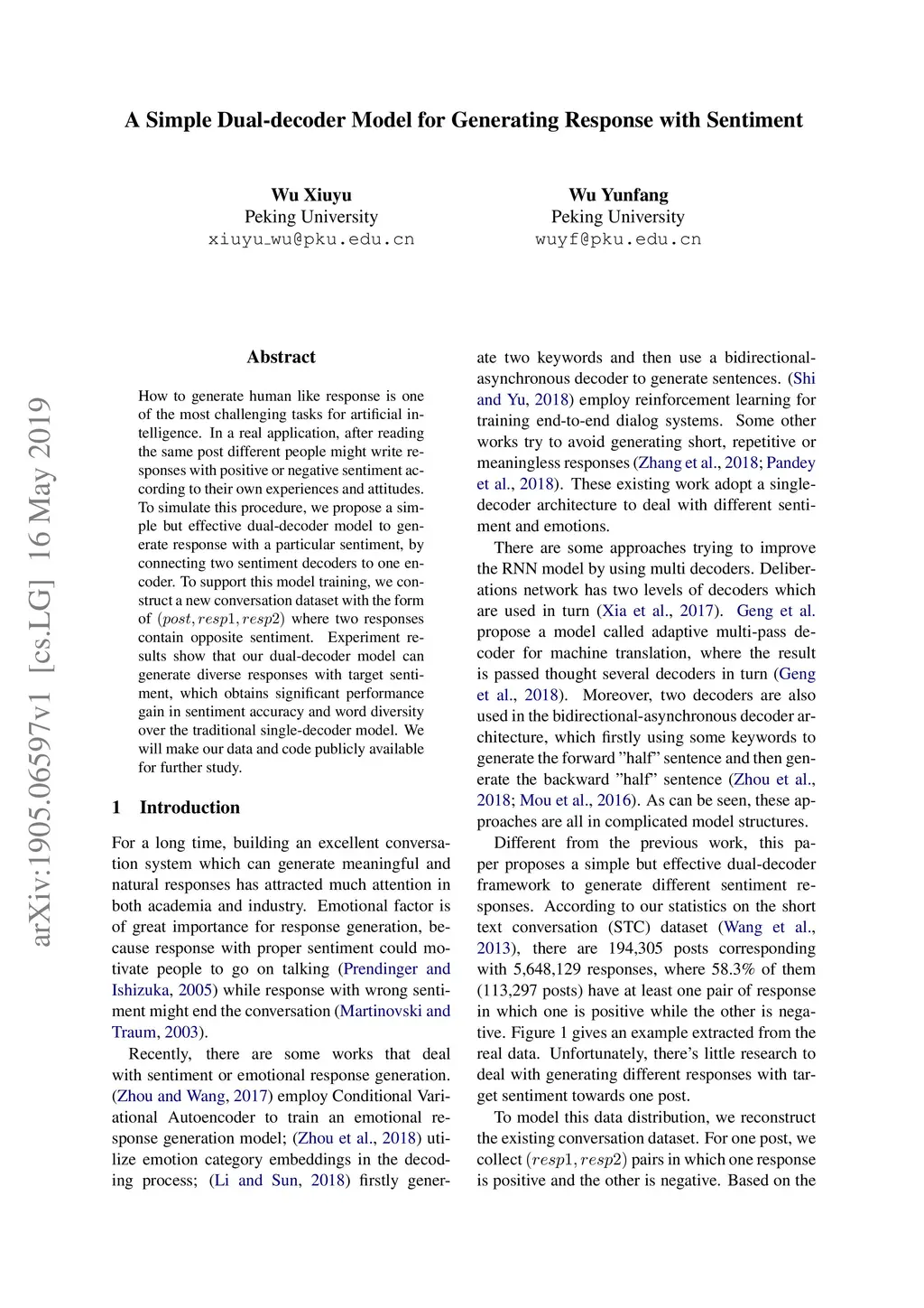 A Simple Dual-decoder Model for Generating Response with Sentiment