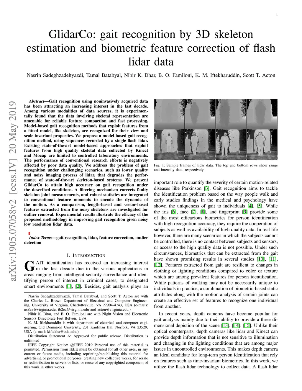 GlidarCo: gait recognition by 3D skeleton estimation and biometric
