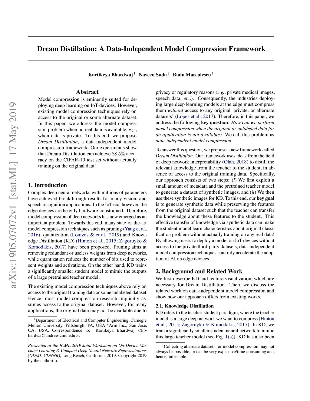 Dream Distillation: A Data-Independent Model Compression Framework