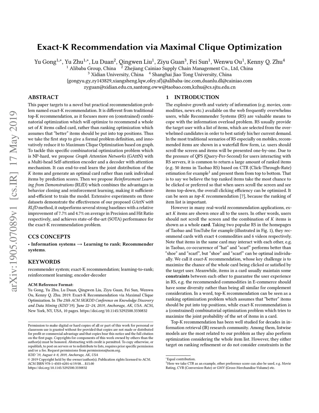 This paper targets to a novel but practical recommendation problem named exact-K recommendation. It is different from traditional top-K recommendation, as it focuses more on (constrained) combinatorial optimization which will optimize to recommend a whole set of K items called card, rather than ranking optimization which assumes that "better" items should be put into top positions. Thus we take the first step to give a formal problem definition, and innovatively reduce it to Maximum Clique Optimization based on graph. To tackle this specific combinatorial optimization problem which is NP-hard, we propose Graph Attention Networks (GAttN) with a Multi-head Self-attention encoder and a decoder with attention mechanism. It can end-to-end learn the joint distribution of the K items and generate an optimal card rather than rank individual items by prediction scores. Then we propose Reinforcement Learning from Demonstrations (RLfD) which combines the advantages in behavior cloning and reinforcement learning, making it sufficient- and-efficient to train the model. Extensive experiments on three datasets demonstrate the effectiveness of our proposed GAttN with RLfD method, it outperforms several strong baselines with a relative improvement of 7.7% and 4.7% on average in Precision and Hit Ratio respectively, and achieves state-of-the-art (SOTA) performance for the exact-K recommendation problem.